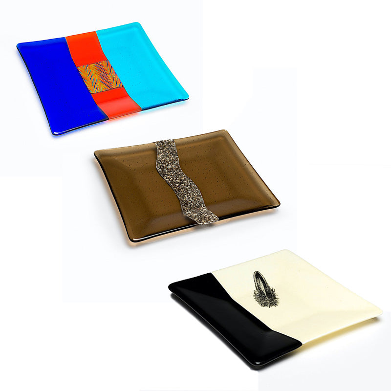 Working in her studio on San Juan Island in Washington, Darleen continues to evolve in her mastery of glass. Her work is complex in design and yet contemporary in presentation. Each piece of fused glass is hand cut, assembled and fused together in an initial firing in the kiln. In a second kiln firing the glass is then slumped into its final form. Each piece is signed by the artist. The result – unique glass art that will add elegance and drama to any home.