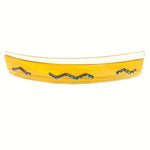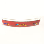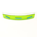 This colorful art glass is a perfect, versatile gift. Can be used as: Photo holder, place card holder, note holder, recipe card holder. The vivid colors of glass are beautifully enhanced with shimmering dichroic glass accents. Each dichroic design on the glass is unique. The soft curve of the fused glass forms a stand alone attractive holder. Choose on the menu from the variety of colors of glass available: Lime green, dark green, purple, red, amber, bronze, sky blue, turquoise.